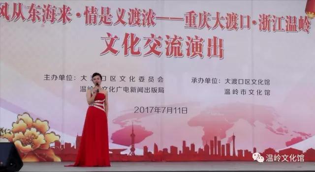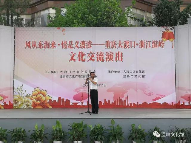 7月11日上午9点,由重庆大渡口区文化委员会、浙江温岭市文化广电新闻出版局主办,大渡口区文化馆、温岭市文化馆承办的“风从东海来 情是义渡浓”——重庆大渡口、浙江温岭文化交流演出在大渡口区风雨舞台成功举办.