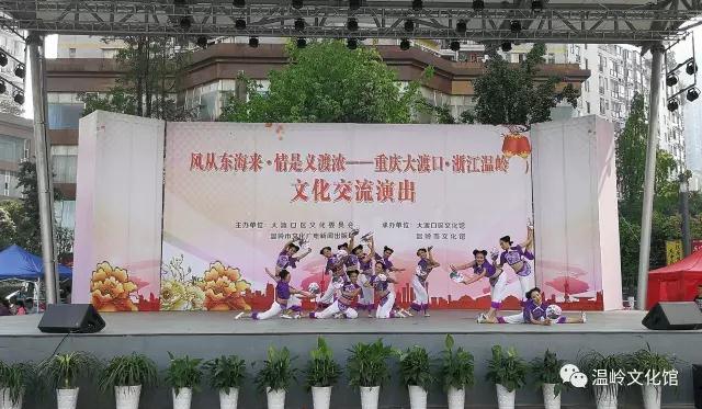 温岭市文化馆围绕本地文化元素,为本次演出精心准备了歌伴舞《最爱是温岭》、男女声二重唱《古韵新河》、女声独唱《永远跟你走》等精彩节目,大渡口区文化馆则选送了群星奖获奖作品小品《占座》、男女声表演唱《岸上的妹儿江上的船》等优秀节目,并和温岭市文化馆合演了歌伴舞《和谐圆舞曲》,赢得了在场观众的阵阵掌声。